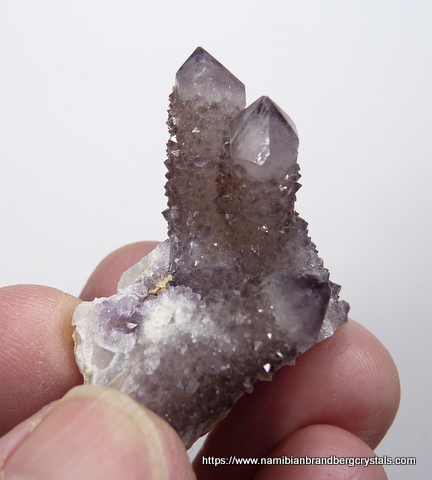 37 x 32 x 26 mm Description: A group of light amethyst / smoky cactus quartz crystals. The terminations have no damage,