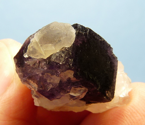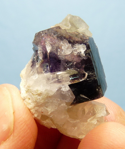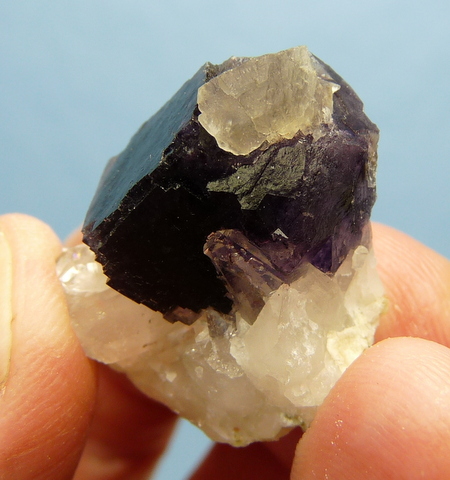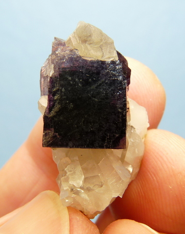 lovely, dark purple fluorite crystal (15 mm on edge) with a small