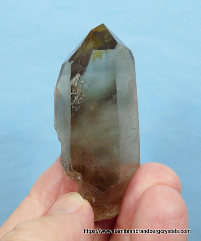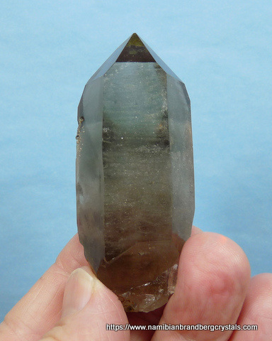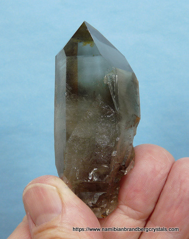 Description: A lovely smoky quartz crystal of good size. The termination tip has an extremely minute nick, hardly visible with the naked eye. The lower section of the crystal has a few large, neat pressure marks and a few contact marks. The specimen comes from a recent, spectacular find and specimens from this area will most probably become a novelty soon. Weight