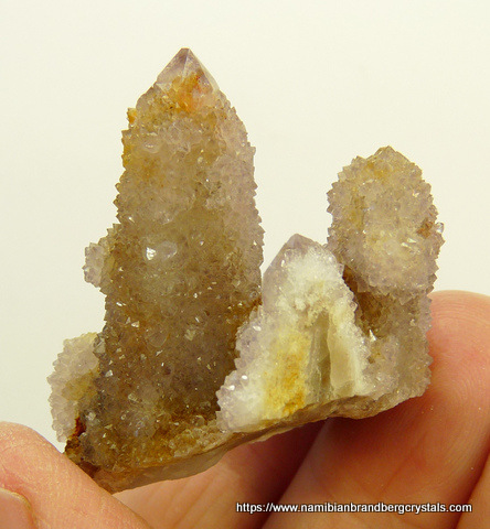 Description: Cactus quartz crystals sit on a quartz matrix. The two main display crystals are