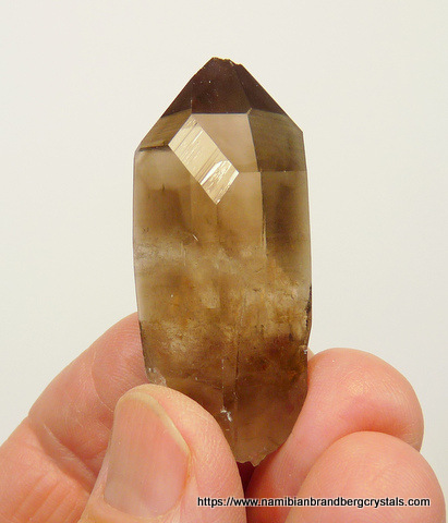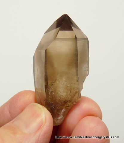 50 x 22 x 21 mm Description: A lovely, gemmy, smoky quartz crystal. The termination point has a