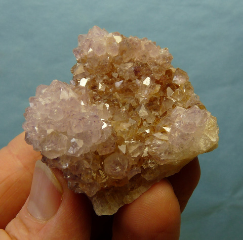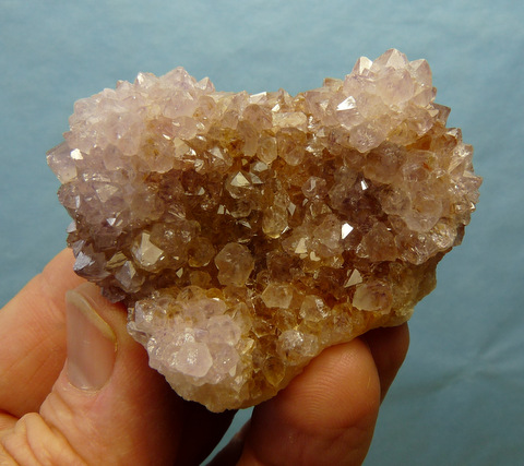 mm Description: Drusy crystals with a light amethyst colouring, and bits of citrine, sit on a thin layer of quartz. A few of the