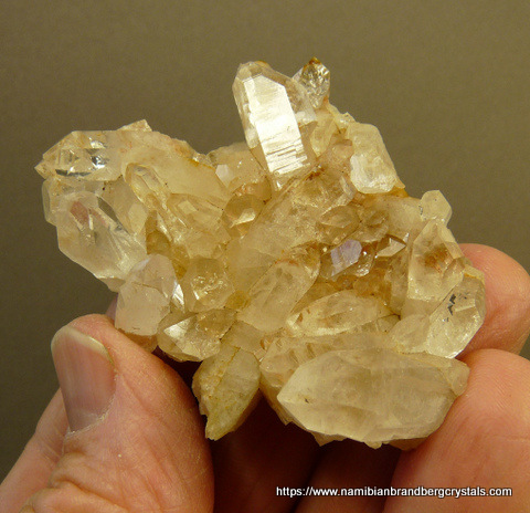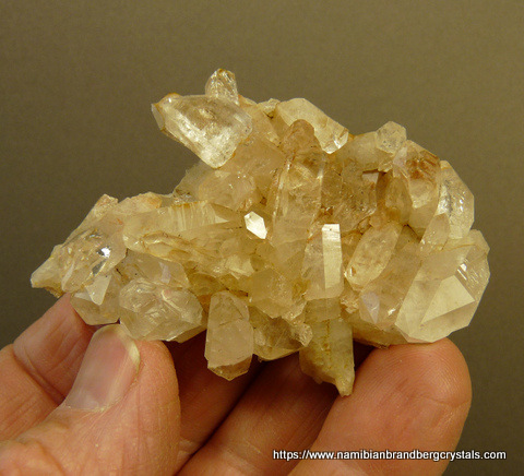 Description: A lovely plate of quartz crystals sit on a thin quartz matrix. A few