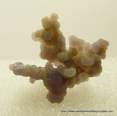 Description: Botryoidal chalcedony with a pale amethyst colouring. A multi-sided specimen that displays well in various positions on a flat surface. The specimen has a few small nicks. Background: These specimens first appeared on the global mineral market in 2016. Although they are fairly abundant at the moment, it is not known how much of this treasure is still left in the ground. Weight