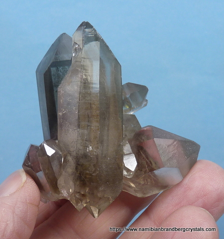 Measurements: Ten lovely, light smoky quartz crystal specimens ranging in length from 47 - 84 mm. They include double terminated crystals, groups, floaters, clusters and two with epidote inclusions. Several termination points have no damage, while a few have nicks. The specimens all have some damage like nicks and contact and pressure marks. Total