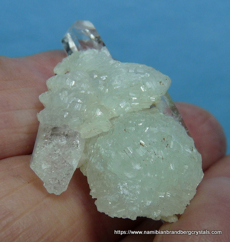 x 25 x 18 mm Description: A group of quartz crystals with pale coloured bladed prehnite. Some
