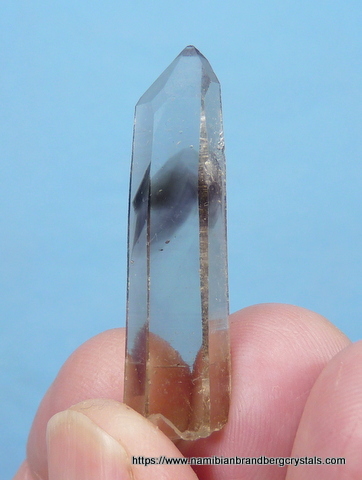 Measurements: 44 x 10 x 09 mm Description: A gemmy, light smoky quartz crystal with a light smoky phantom and a hint of amethyst colouring. This lovely crystal has very little damage - only a small pressure mark and a few minute nicks. This
