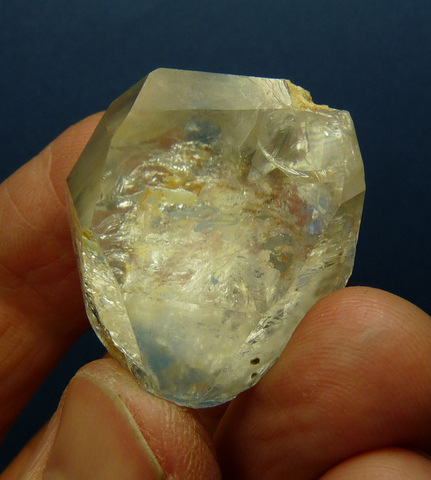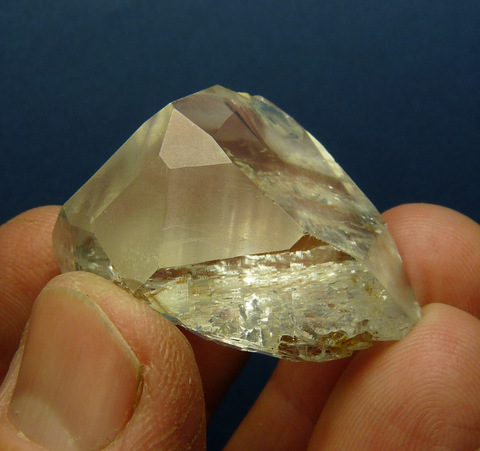 x 33 x 23 mm The top of the crystal has a ding, with a piece of feldspar in the location of the ding (image bottom right). That is an indication that the damage happened naturally, while forming. Otherwise only a few very minute nicks along the ridges (hardly visible with the naked eye). The bottom of the crystal is uneven, where it parted from its matrix. Weight of Specimen: 35.4 g Chemical Composition: