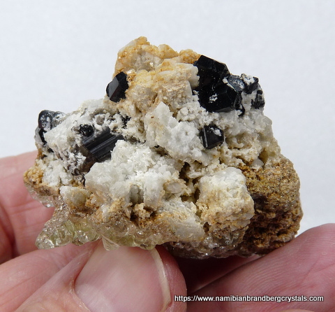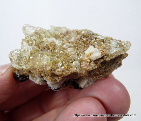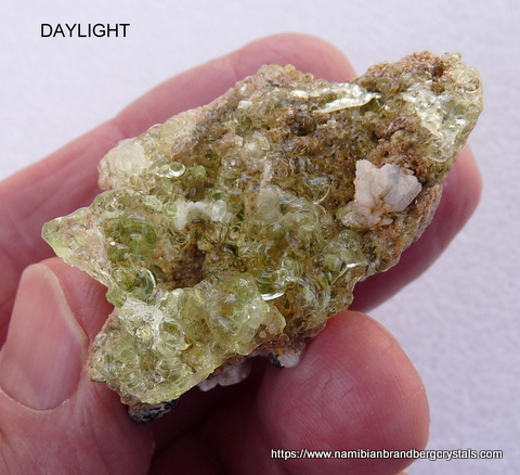 mm Description: Prolific aggregates of hyalite opal sit on a feldspar matrix which has several schorl crystals on it. It fluoresces beautifully under ultraviolet light. One photograph was taken in natural daylight. The specimen has a few nicks and contact marks. Weight of Specimen: 32.2 gChemical