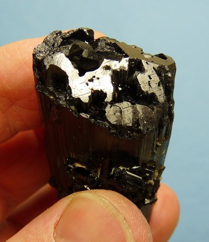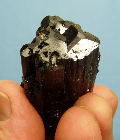A double / multi-terminated black tourmaline (schorl) crystal with