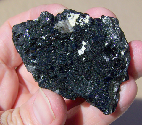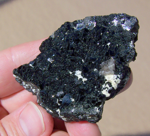 you'll see many small, shiny schorl facets, on both sides (difficult to