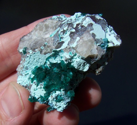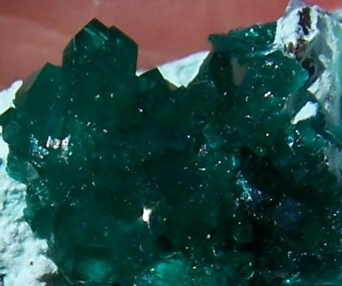 Small, gemmy clusters of dioptase crystals (crystals up to