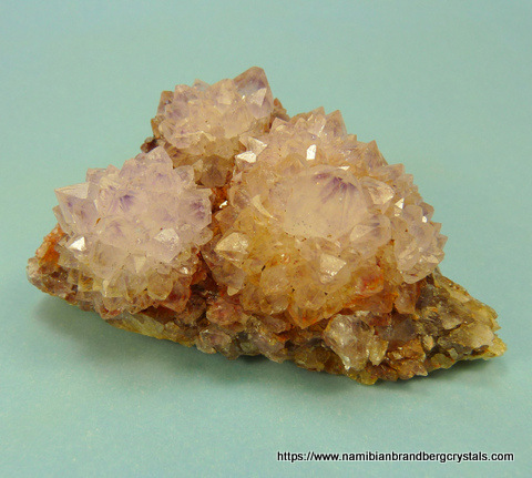 Description: Beautiful rosettes of light cactus quartz crystals with a lovely shimmer to them, sit on a quartz matrix. The specimen, which has a few small nicks, displays well on a flat surface. Weight