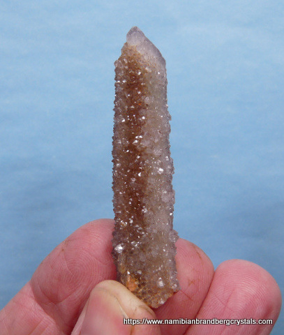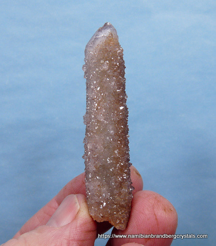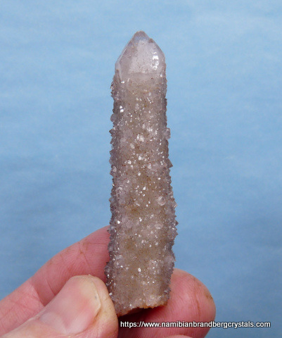 Description: A slender cactus quartz crystal. The termination point has only a small nick, while the rest of the crystal has no notable damage. Weight