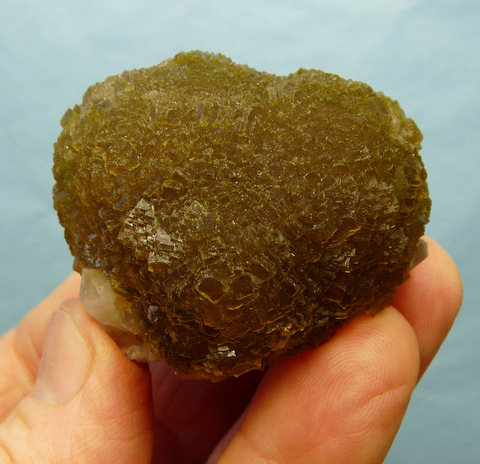 Measurements: 49 x 45 x 32 mm Description: A domed aggregate of stepped fluorite crystals with a few milky quartz crystals attached to the edges. The fluorite crystals started off with a blueish to purple colouring, but received a final, thin growth of greenish / yellow fluorite. Image top right shows the bottom of the specimen. The only