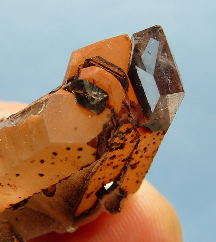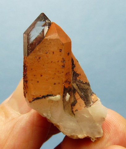 has a long chip running nearly its full length (visible on one of these image). The matrix is a few pieces of broken crystal. Weight of Specimen: 14.1