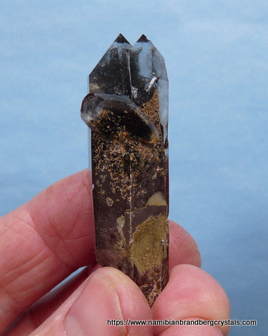 Measurements: 55 x 20 x 16 mm Description: An exceptional quartz specimen that is far better appreciated in real life than what images can portray. It is a twin crystal, with a small, double terminated crystal on one of its sides. The specimen has beautiful green chlorite, as well as hematite inclusions. The terminations have a few very small nicks, while the rest of the specimen has a few small nicks. Weight