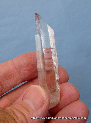 Description: A gemmy, clear quartz crystal with female termination. The termination has a few small nicks, while the rest of the crystal has a few contact and pressure marks. Weight of Specimen: 25.8 gChemical Composition:
