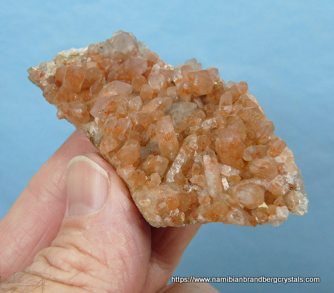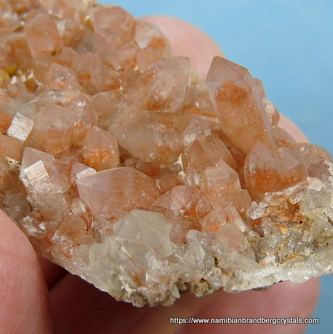 mm Description: A thin plate of orangy-coloured phantom quartz crystals. The edges of