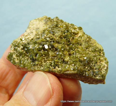 48 x 32 x 16 mm Description: Small demantoid garnets sit on a rock matrix. The specimen