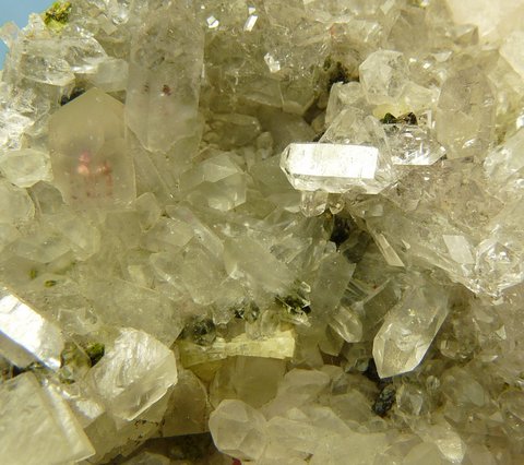 Quartz and calcite crystals share a matrix of mixed minerals with