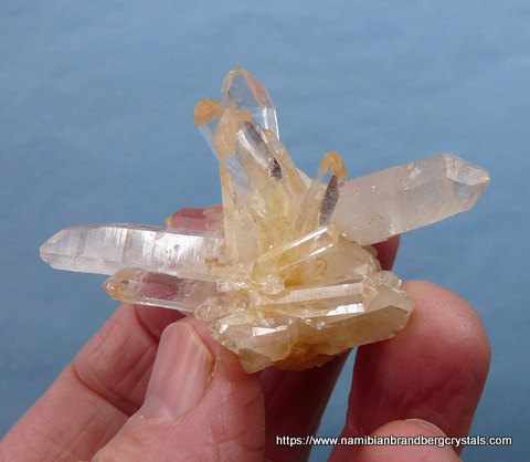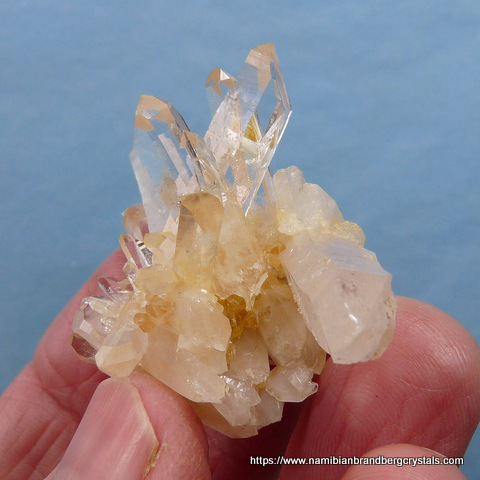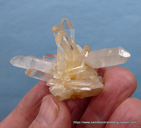 Description: A group of quartz crystals that was mined by ourselves. It displays well on a flat surface, all-round. Most terminations have only small nicks, while the rest of the specimen has a few contact / pressure marks. Weight