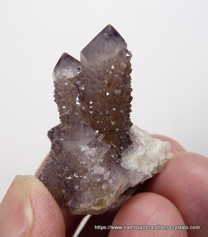 37 x 32 x 26 mm Description: A group of light amethyst / smoky cactus quartz crystals. The terminations have no damage,
