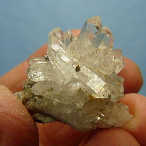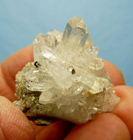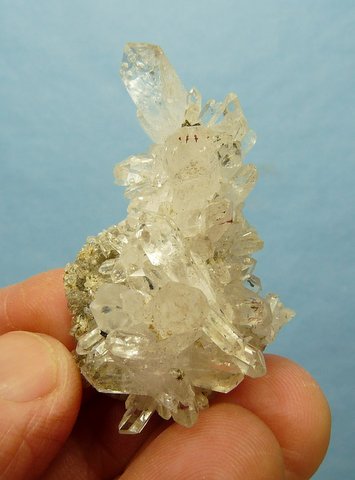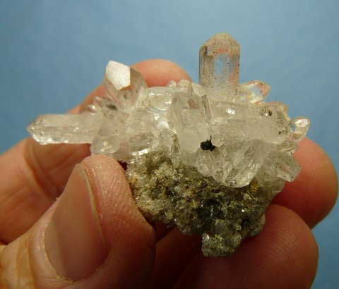 clear quartz crystals on a thin matrix. There are a few very small