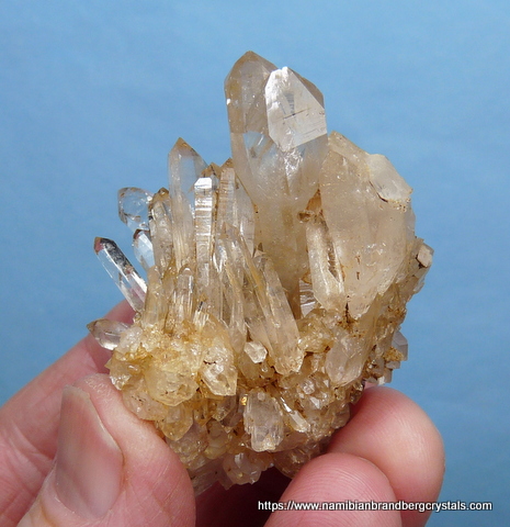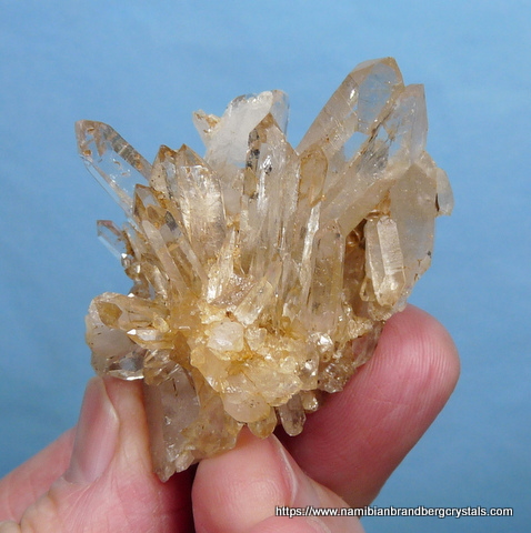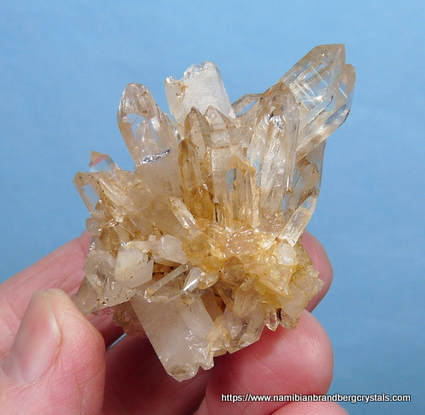 Description: A cluster of gemmy quartz crystals, that displays well on a flat surface in various positions. This
