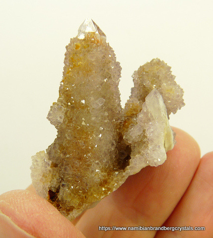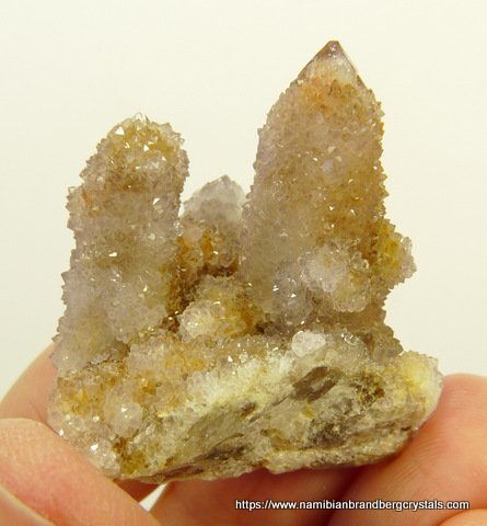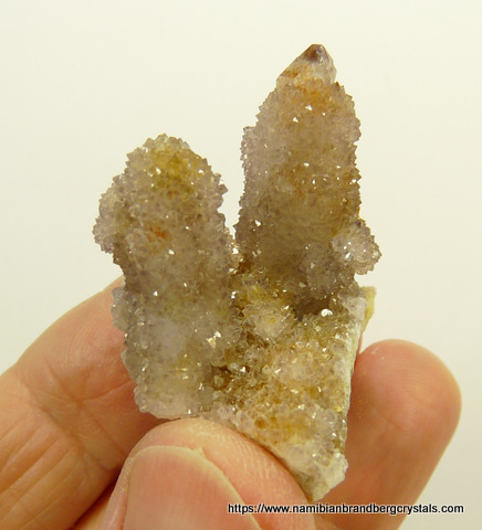Description: Cactus quartz crystals sit on a quartz matrix. The two main display crystals are