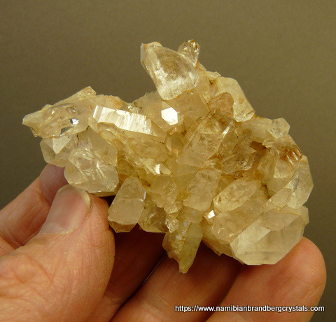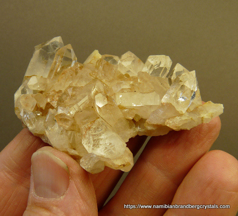 Description: A lovely plate of quartz crystals sit on a thin quartz matrix. A few