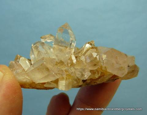 mm Description: Clear quartz crystals sit on a quartz matrix. A few crystals have broken off, while some have small nicks. Weight of Specimen: 41.2 g Chemical Composition: SiO2 Hardness on Mohs Scale: 7 Specimen