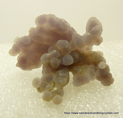 Description: Botryoidal chalcedony with a pale amethyst colouring. A multi-sided specimen that displays well in various positions on a flat surface. The specimen has a few small nicks. Background: These specimens first appeared on the global mineral market in 2016. Although they are fairly abundant at the moment, it is not known how much of this treasure is still left in the ground. Weight