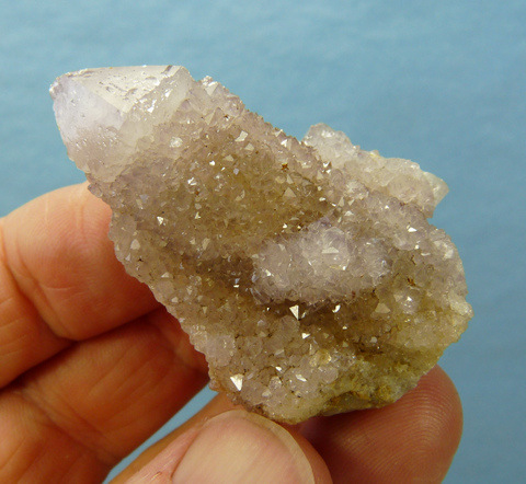 Description: Five medium quality quartz specimens from KwaNdebele, including cactus quartz specimens. They range in length from 36 to 52 mm. The drusy specimen is 2-sided. The