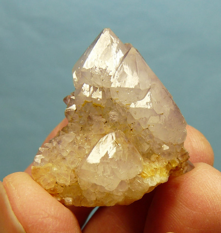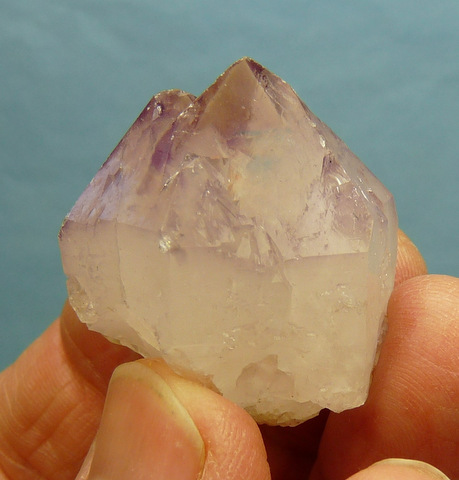 Description: Ten (mostly stubby) quartz specimens of medium quality, ranging in length from 32- 39 mm. The specimens are mostly slightly milky to clear, with bits of amethyst colouring. Most