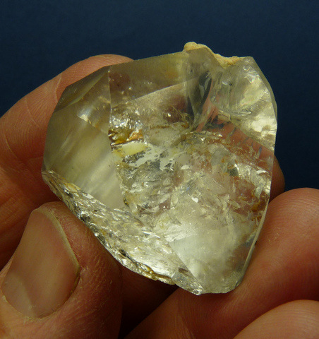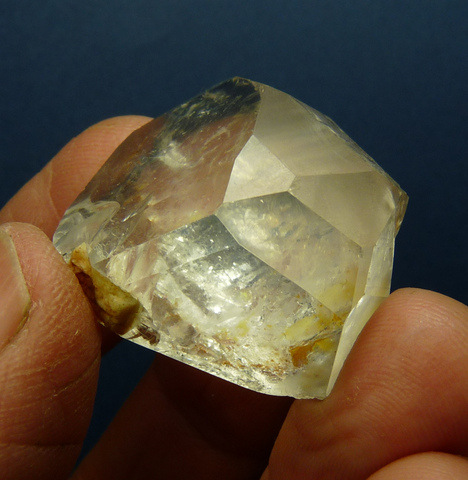 x 33 x 23 mm The top of the crystal has a ding, with a piece of feldspar in the location of the ding (image bottom right). That is an indication that the damage happened naturally, while forming. Otherwise only a few very minute nicks along the ridges (hardly visible with the naked eye). The bottom of the crystal is uneven, where it parted from its matrix. Weight of Specimen: 35.4 g Chemical Composition: