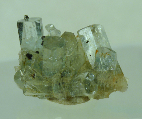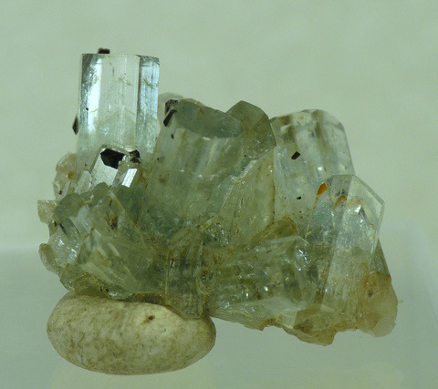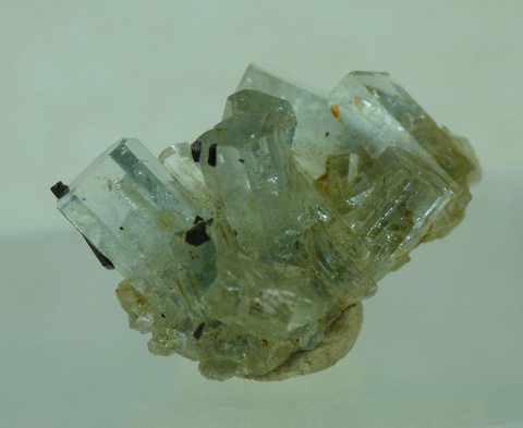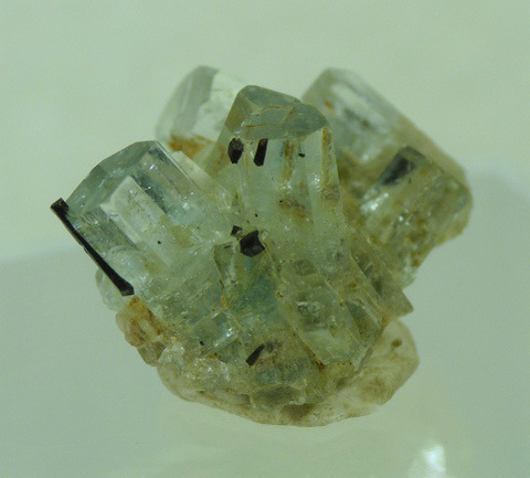 Measurements: 20 x 15 x 10 mm Description: A group of small aquamarine crystals with bits of schorl on it. The aquamarine crystals generally have good clarity. The