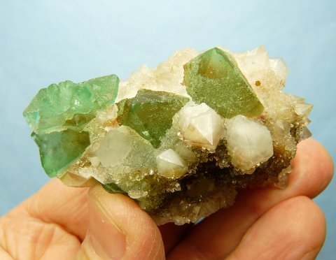 not often that you see fluorite IN quartz from Riemvasmaak. It seems
