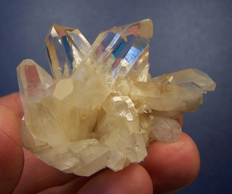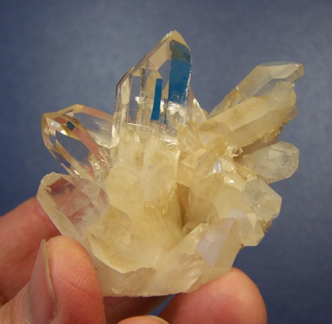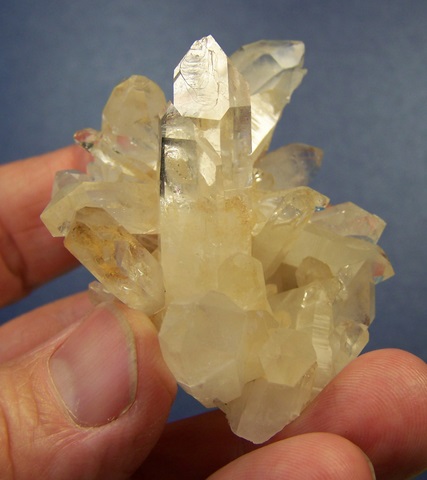 mm Description: A gemmy, high quality cluster of clear quartz crystals. The largest crystal is undamaged, with the only damage being a few nicks to some of the small crystals. The bottom of the specimen is crystallized; all in all a very fine specimen. Weight of Specimen: 63.7 g Chemical