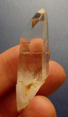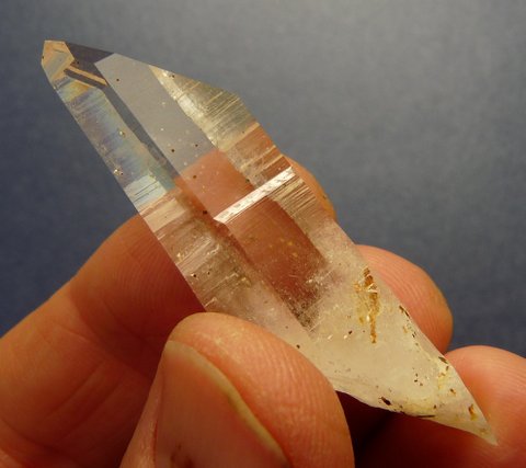 Measurements: 56 x 16 x 13 mm Description: A lovely, gemmy, clear quartz crystal with beautiful growth patterns and fairly big termination facet and small female termination point. Inside