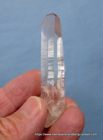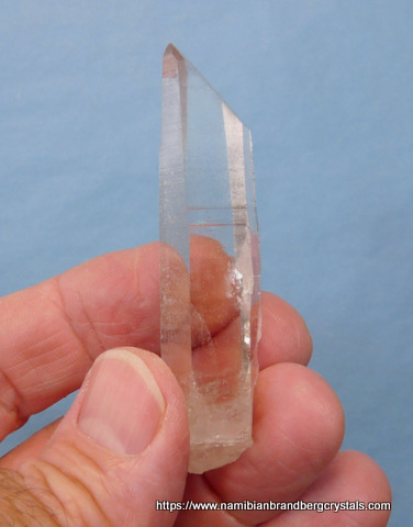 Description: A gemmy, clear quartz crystal with female termination. The termination has a few small nicks, while the rest of the crystal has a few contact and pressure marks. Weight of Specimen: 25.8 gChemical Composition: