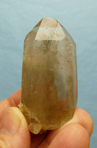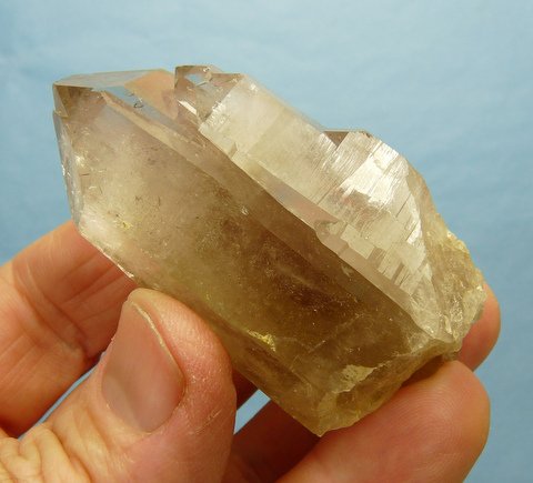 Measurements: 63 x 31 x 30 mm Description: A lovely quartz crystal, with another interesting quartz crystal fused to its side, both with a light smoky colouring. The