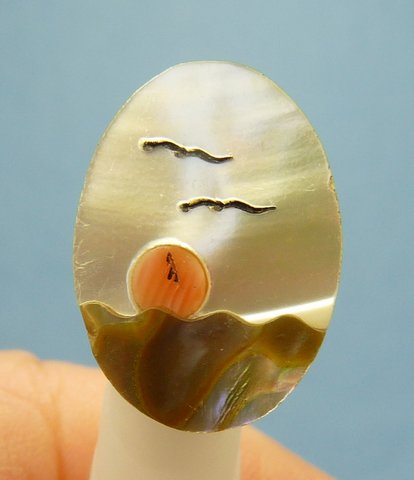 Description: These eight samples of shell craft (each measuring 18 x 13 mm) are